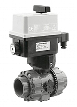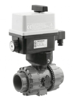 PVC kulový elektrický ventil třícestný - připojení lepení, barva - šedá, napájení 230 V